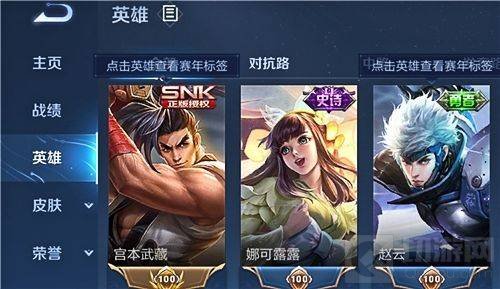 1.先来到个人主页 ,选择“英雄”这一项,并且点击你拥有赛年标签的英雄。