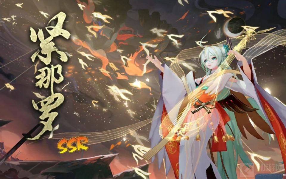 SSR式神角色,远离京都的严岛,曾被长夜笼罩多年,潜伏在黑暗中的妖怪与人类为敌,使得生灵几近灭绝。在绝望之中,紧那罗手执琵琶“玄象”,用音乐引导着人们开拓的道路,最后,她改写那古老的历法,成为照耀严岛、守护人类的光明。