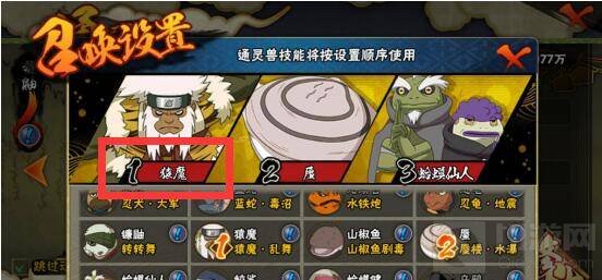 4、佩恩在游戏中选择查克拉密卷,开局释放通灵,能够逼迫敌方交出替身,然后在保护结束后直接奥义起手,最后配合技能就能够赢得比赛。