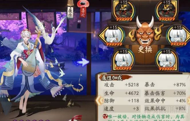 如果觉得没信心反堆暴击,那么就直接走速攻暴的思路,更加实惠一些,反正这式神奶量充足,也不缺爆伤,这种选择培养起来更加方便一点,如果选择了这种堆法的话,输出会稍微牺牲一点,因为副属性要玩命堆速度了。