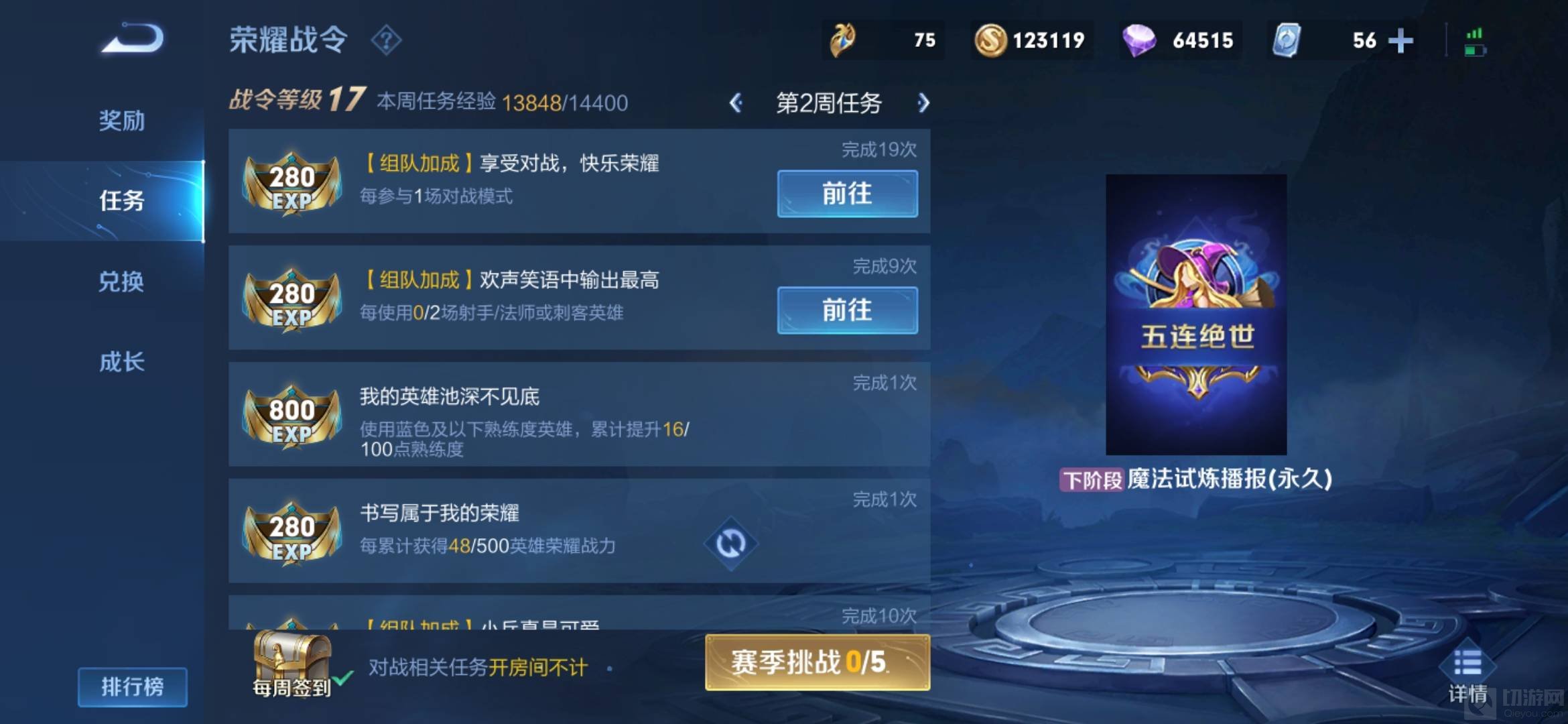 1:通过每周完成战令任务获得战令经验来升级,一级需要2000经验,一周能获得14400经验,相当于一周最多能升7级。