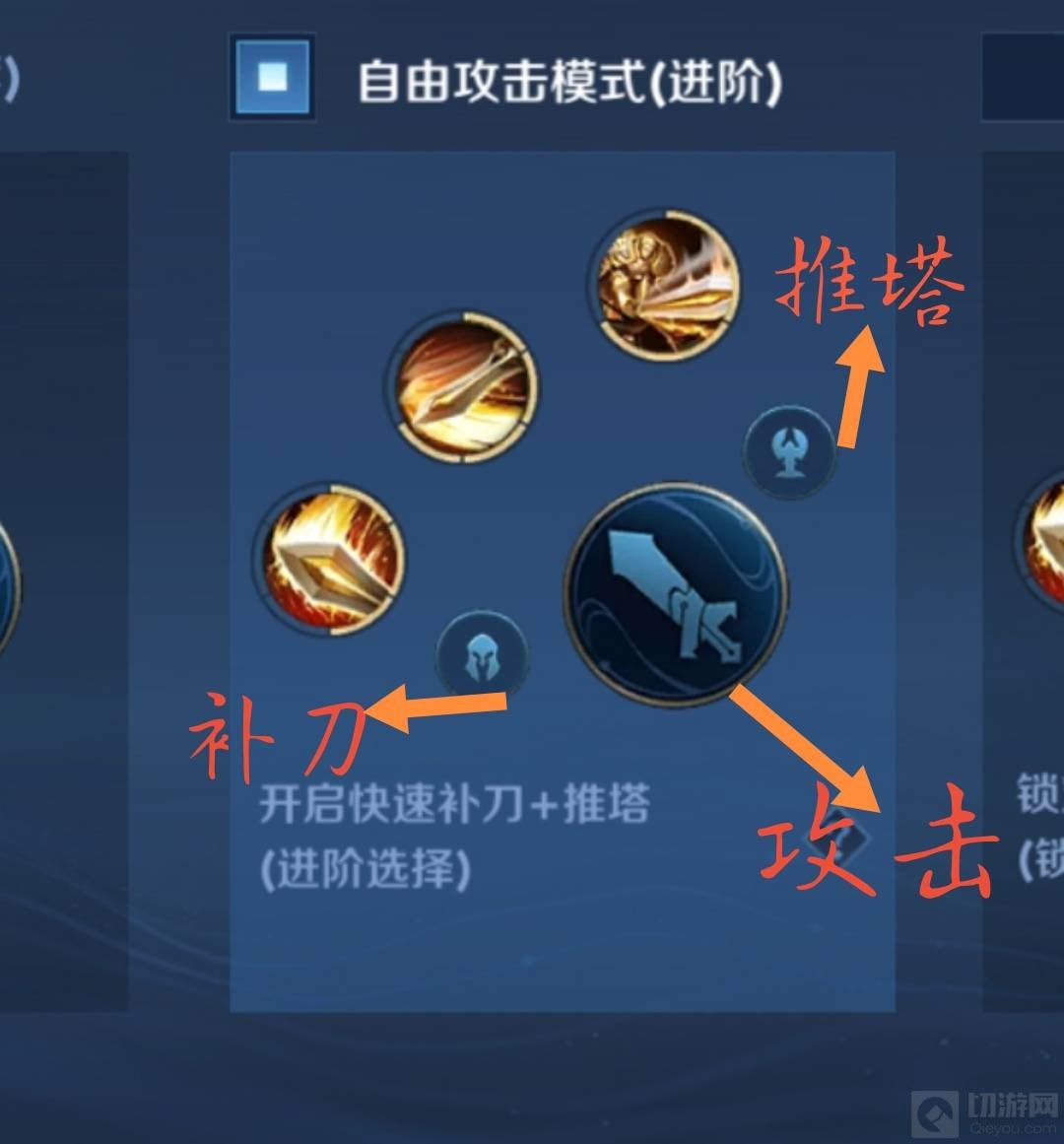 4、在游戏中点击补刀键就可以自动瞄准小兵,点击推塔键就能自动瞄准防御塔,点击攻击键就能自动瞄准敌方英雄。