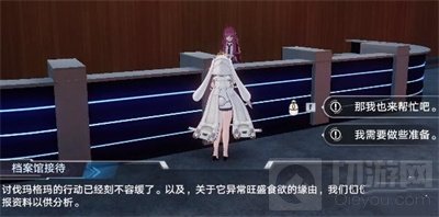 1、首先玩家找到档案馆里面的接待,和她进行对话之后,我们就可以领取这个支线任务了;