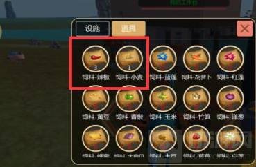 1、首先其中需要的辣椒饲料包以及小麦饲料包在工作台的道具中制作。在“道具”这一项,制造辣椒饲料和小麦饲料,5个辣椒才得到一包辣椒饲料,小麦饲料也是5个,获取一包小麦饲料。