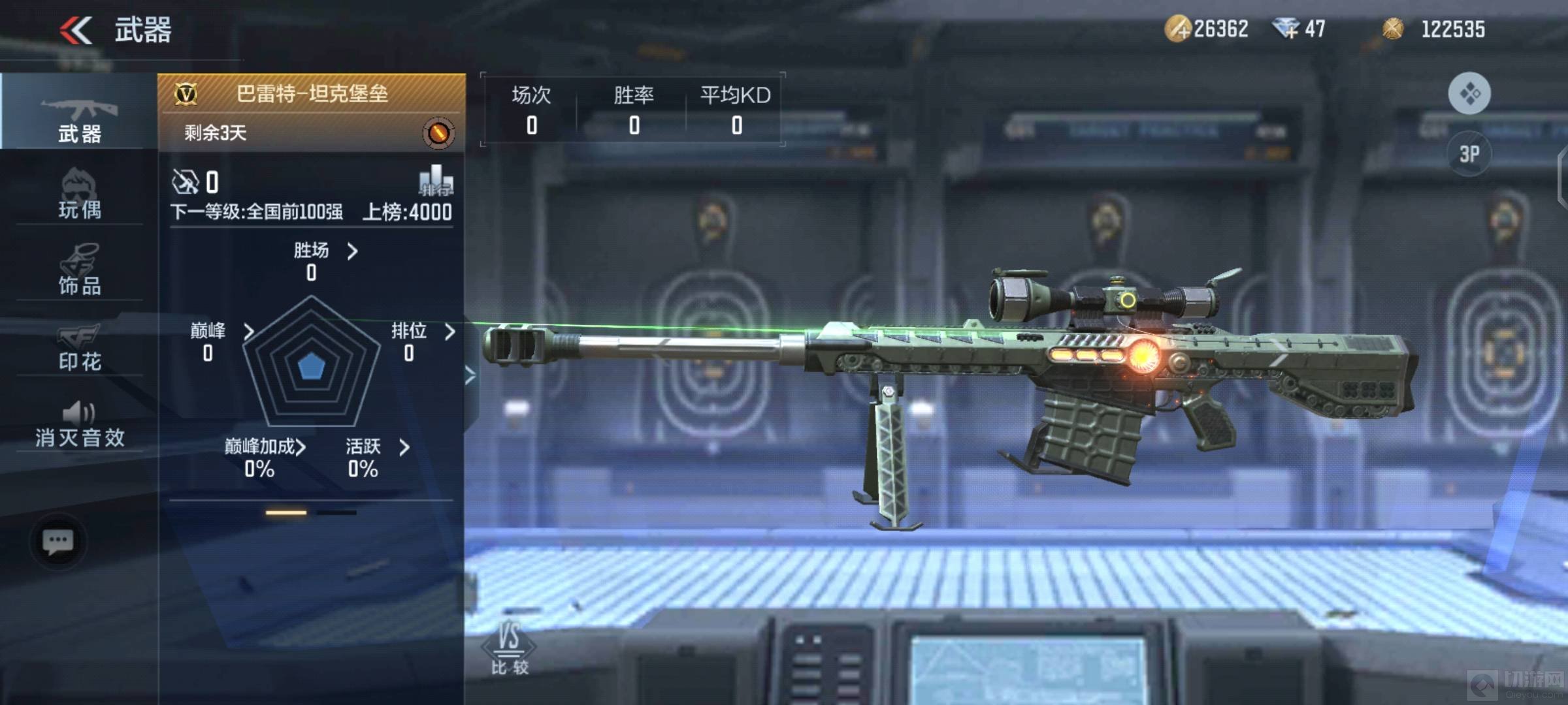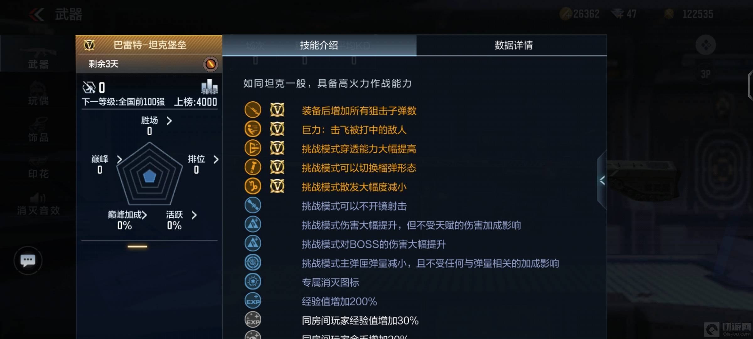 进入游戏主页面,排位赛下方即可进入远征挑战,通过远征日常任务即可领取3天巴雷特坦克堡垒。