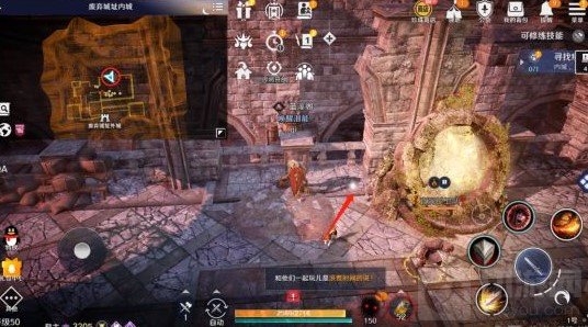 我们需要前往【废弃城址内城】寻找小鹰的踪迹。第一个痕迹很难注意到,因为它藏在boss入口的左后方,再加上边上的野怪会自动攻击咱们,所以很容易就忽略掉。