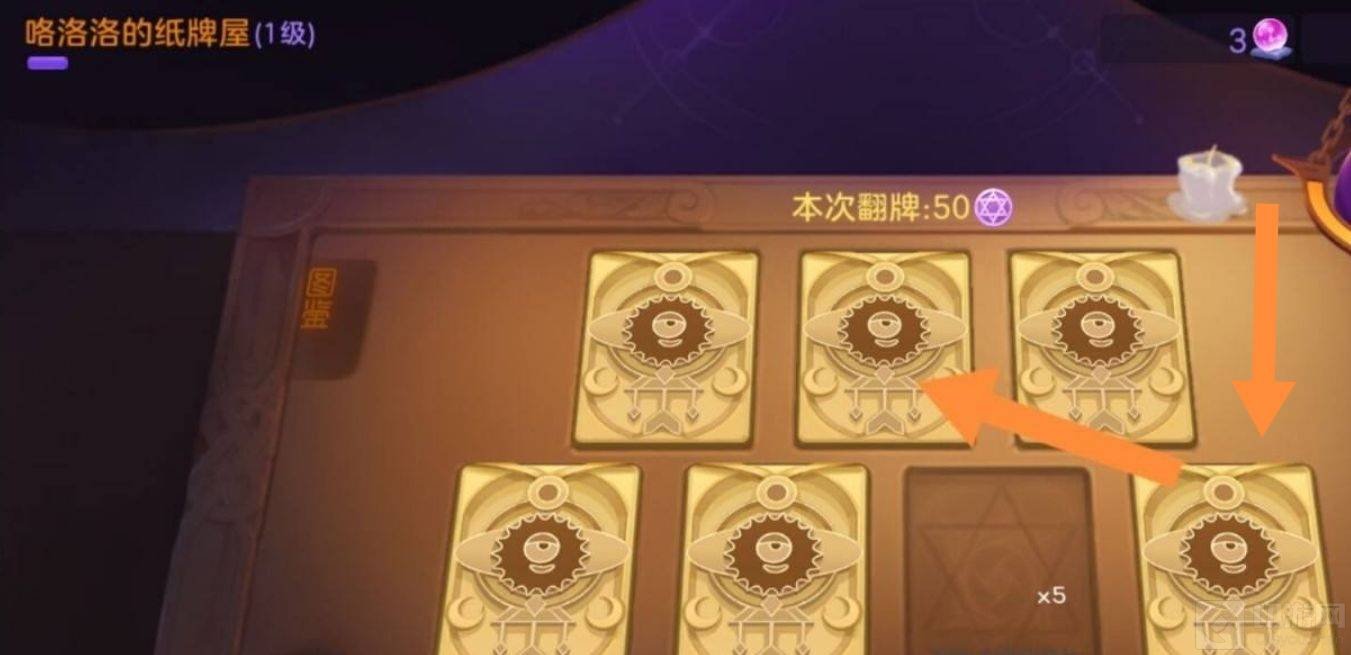 1、先打开游戏,进入咯洛洛的占卜屋,然后点击纸牌屋的第二张牌,再点击纸牌屋的第七张牌。