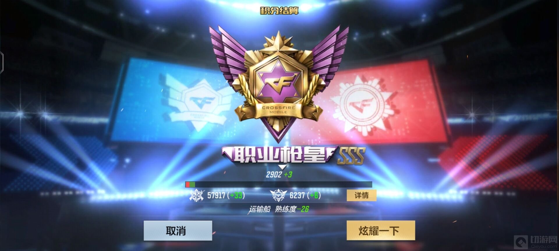 在这样的情况下,即便游戏以失败收尾,只要自己能够在最后的关头尽可能输出,保持良好发挥,那么结算时就不会扣分,甚至还会加上一些分。(如下图所示)
