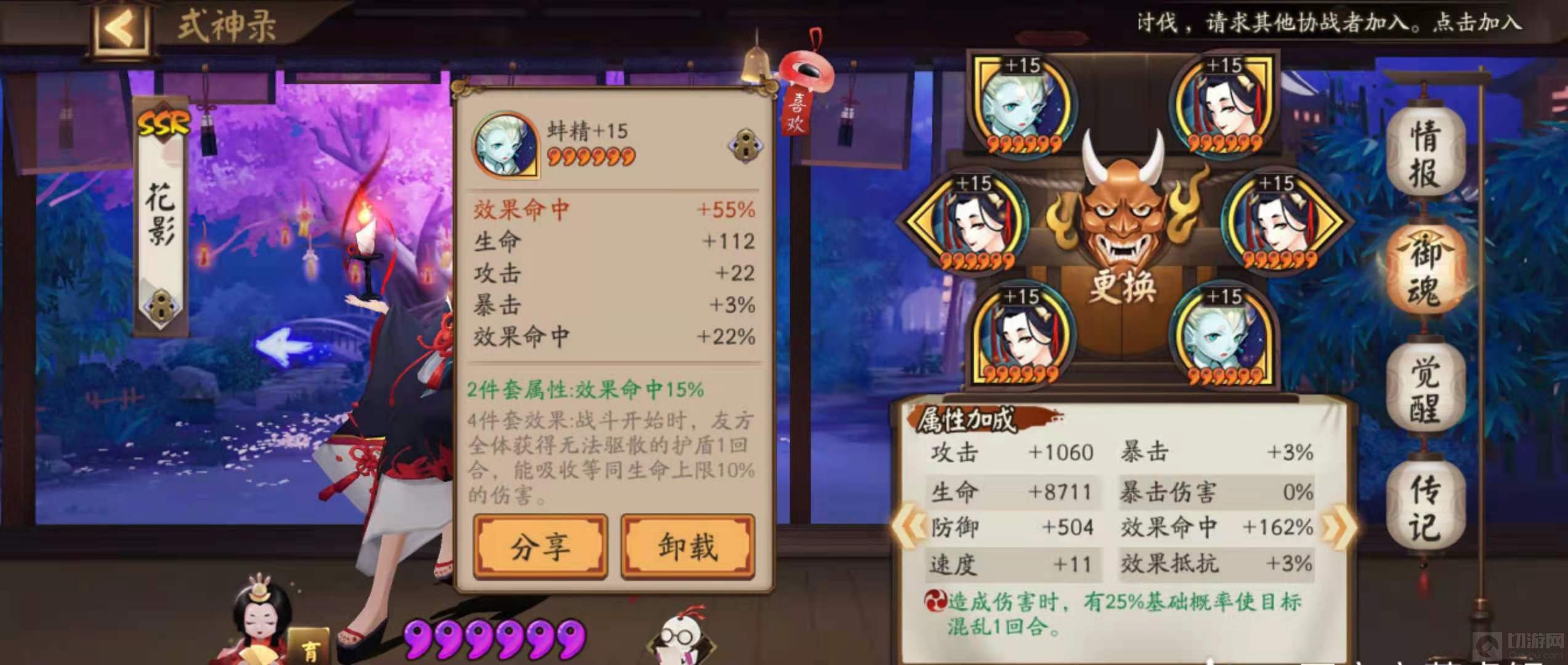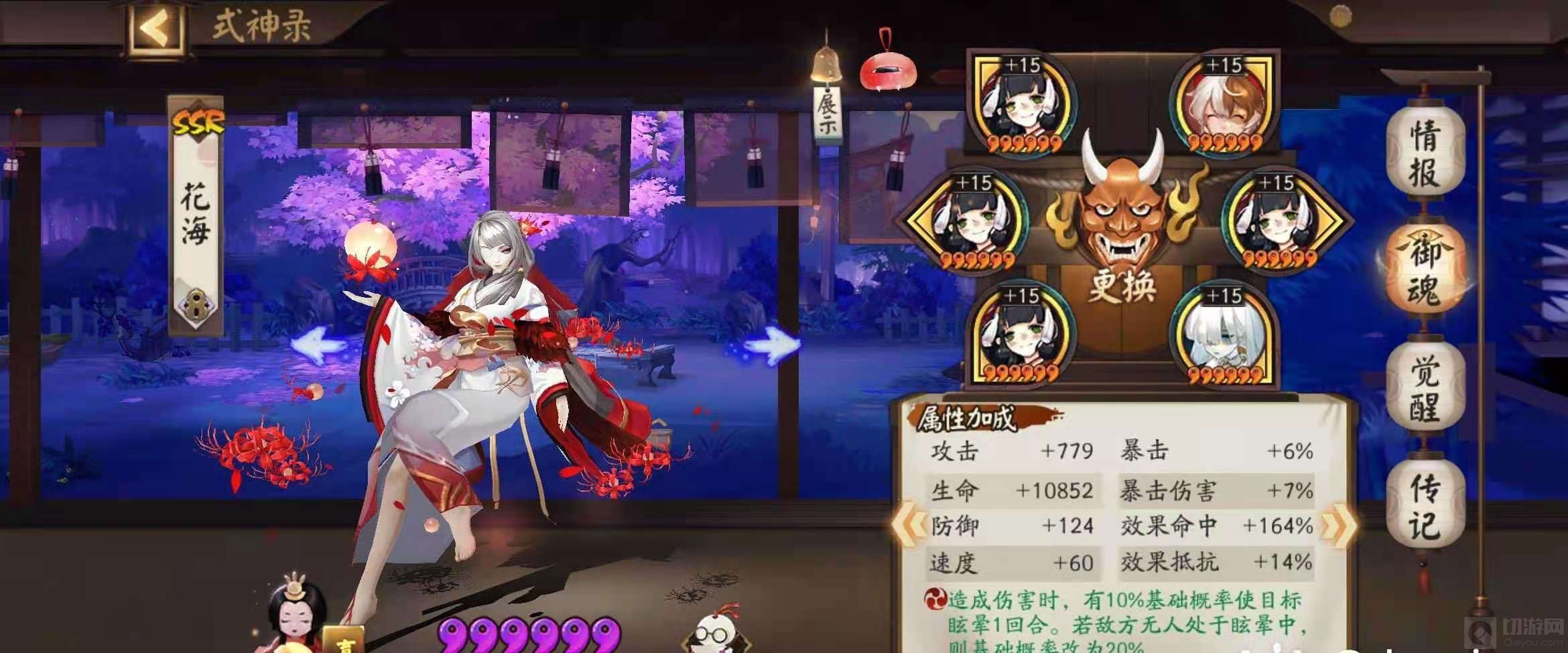 1、钟灵花,钟灵应该是现在彼岸花最常见的御魂搭配了,非常符合彼岸花的技能机制,主堆命中效果,三号位必带命中。