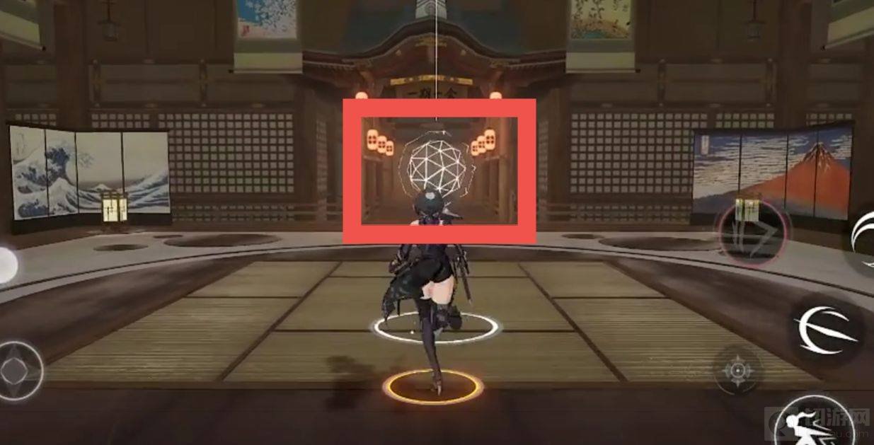 3.接着玩家会来到一个新场景,中间有一个挂着的球体,玩家走到前面。