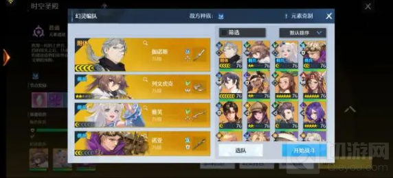 伽诺斯与卡弥的配合大幅度提高雷元素伤害(卡弥作为斗士替换掉游侠,可以减少在通关高层数时幻灵死亡的概率)。编队阵容中有着风元素、水元素与雷元素可以增加对多元素怪物层的伤害。