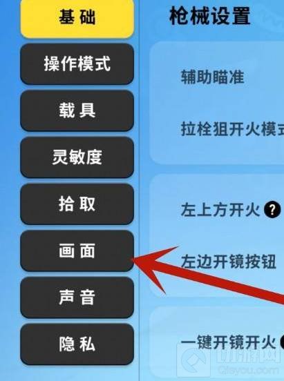 3,然后点击画面选项。