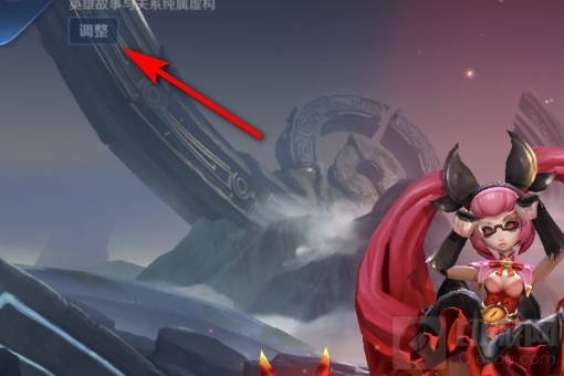 3、进入英雄页面后,点击左上角的调整。