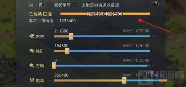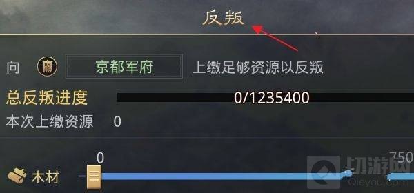 3.我们就开始准备反叛了。我们看见反叛需要上缴资源1235400。如下图所示。