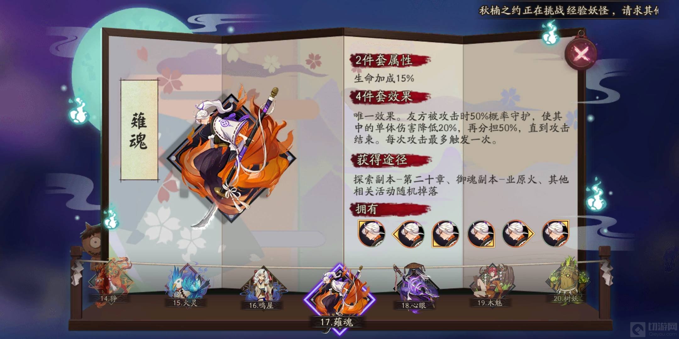 阴阳师天剑韧心鬼切御魂搭配推荐如下: