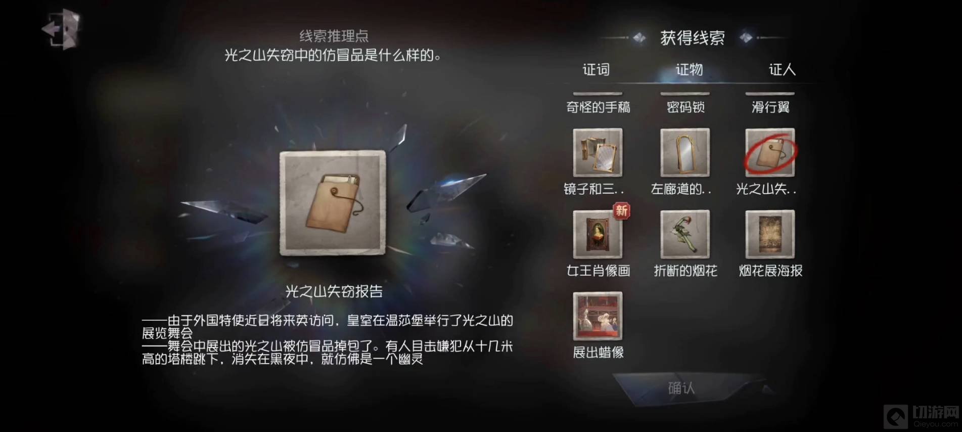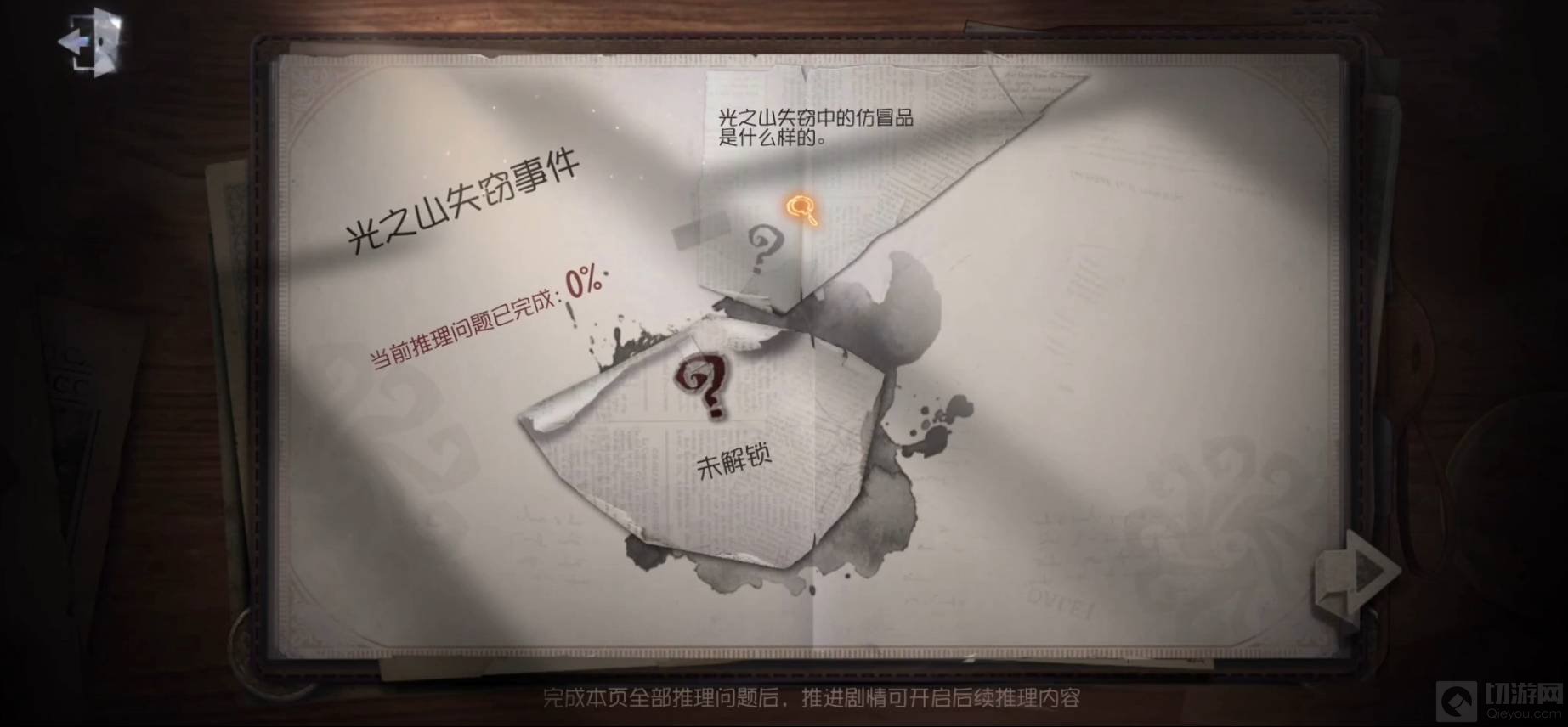 13、光之山失窃中的仿冒品是什么样?这里选择【光之山失窃报告】,