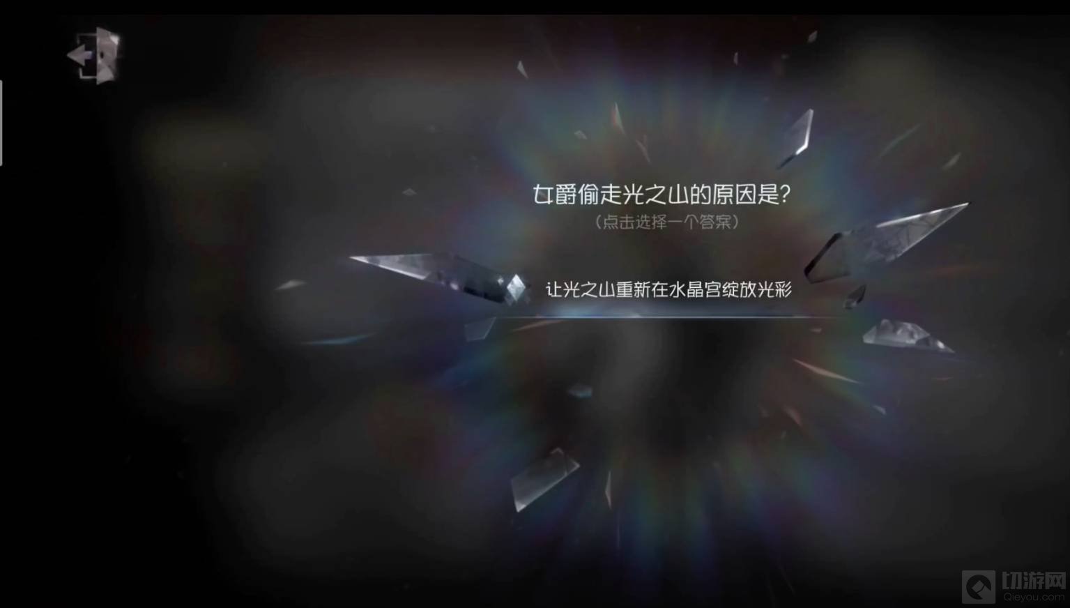 14、女爵偷走光之山的原因是?【让光之山重新再水晶宫绽放光彩】