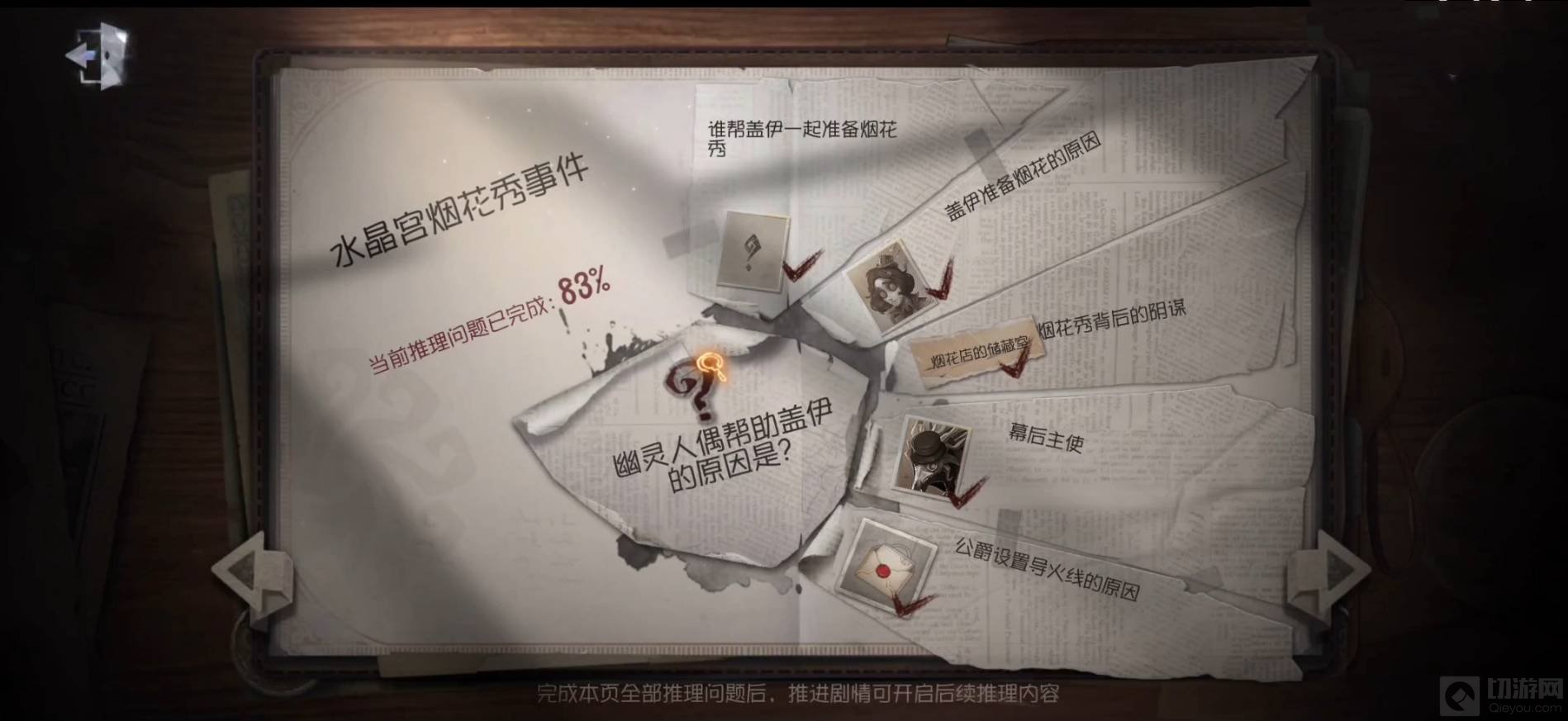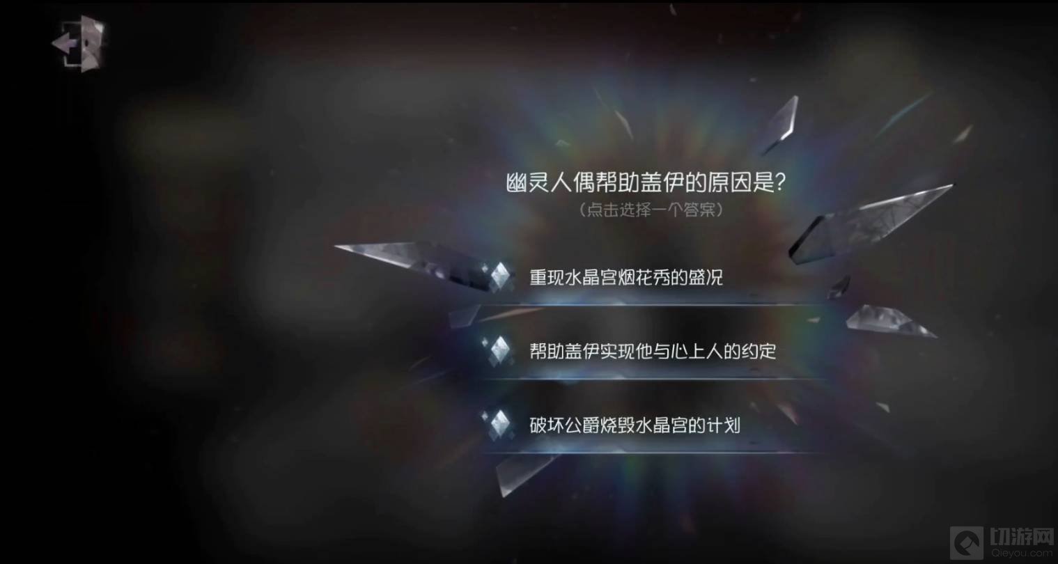 18、幽灵人偶帮助盖伊的原因,选择第二个,水晶宫烟花秀事件就推理完了。