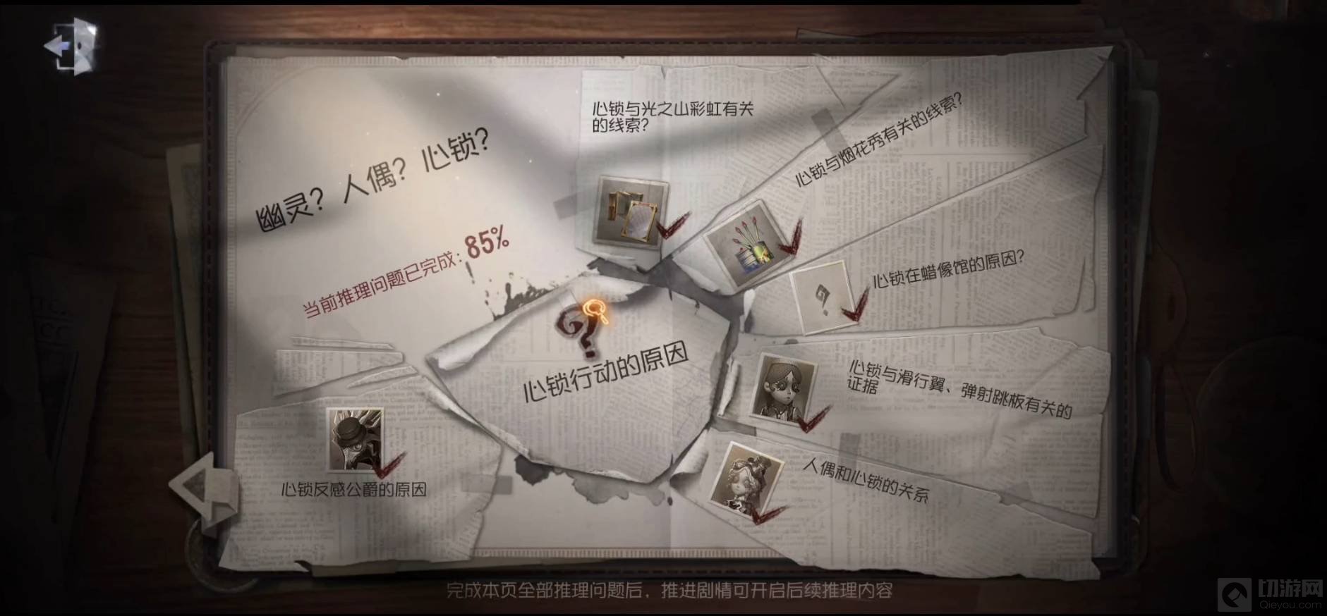 20、幽灵?人偶?心锁?事件,推理选择如下图所示: