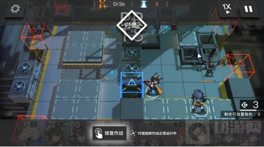 左侧大盾出现后,在左侧回血格上放置重装,以拦截敌人。