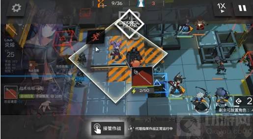 敌人会先从右侧出现,在防守点前的回血格上布置先锋。
