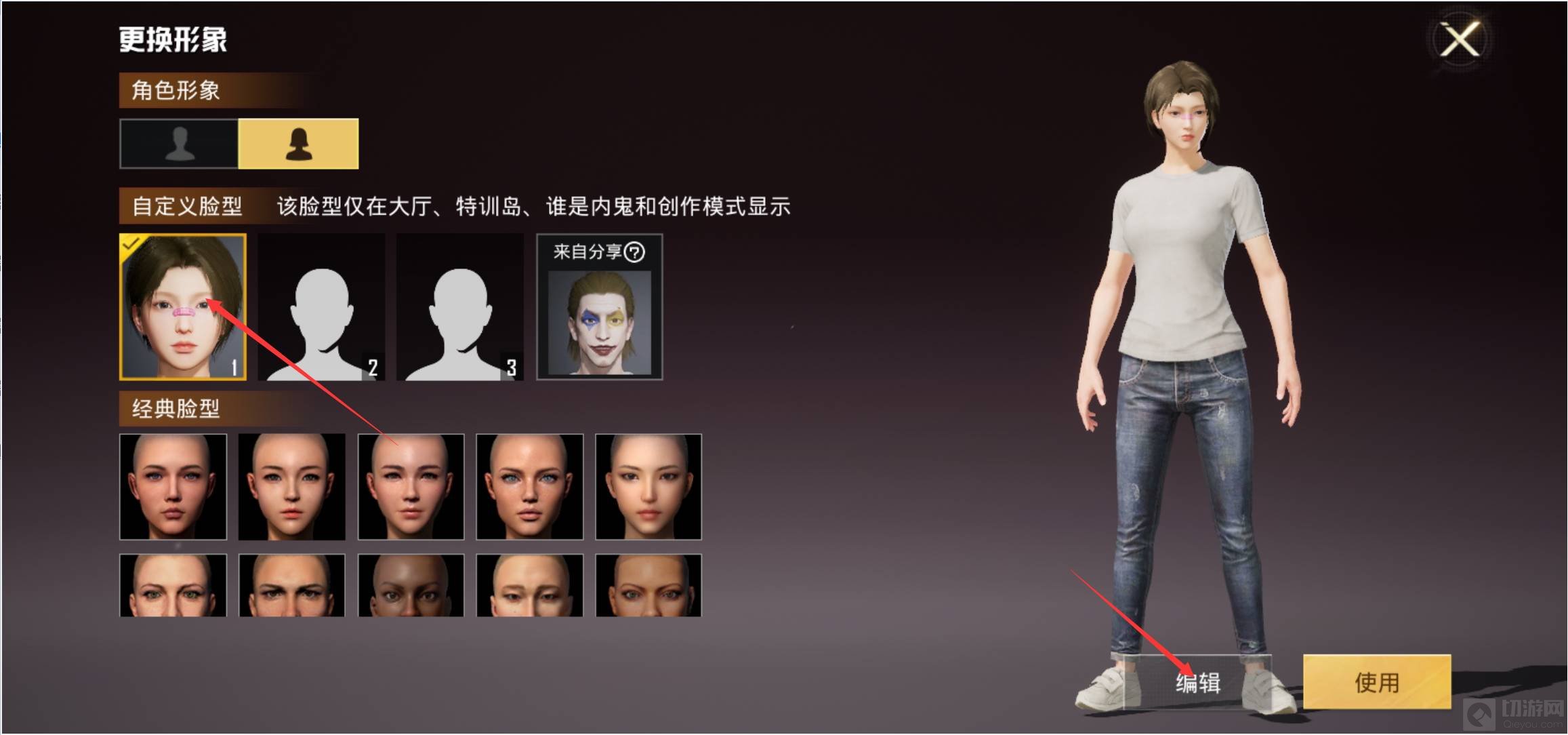 和平精英吃鸡捏脸进入自定义脸型,编辑保存即可在游戏里显示。