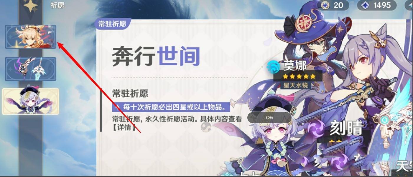 1.首先进入到原神的游戏中,点击右上方的祈愿图标。