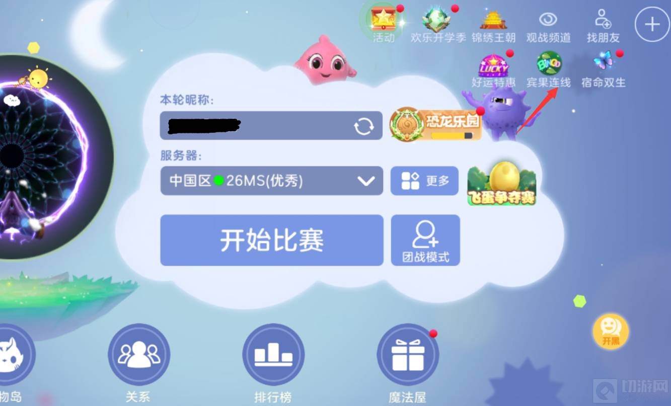 1,先在游戏主页面点击右上角的宾果连线。
