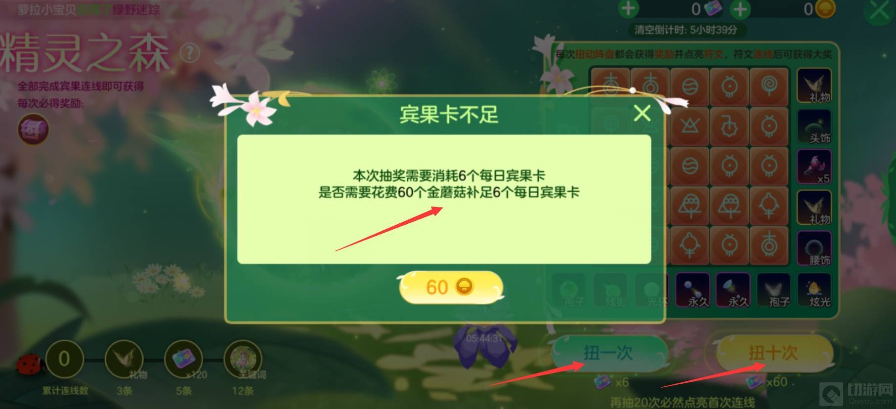 2,然后点击扭一次或者扭10次就可以使用每日宾果卡了,每日宾果卡不足则需要花费金蘑菇进行补足。