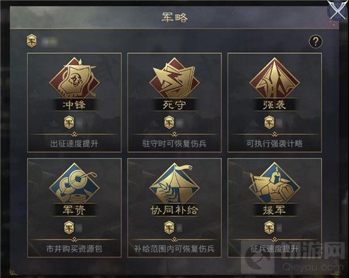 2、本赛季中,国家原有的国策由全新的同盟军略来替代。军略是所有同盟官员均可使用的战略手段,可以在短时间内或限定区域内改变经济或战斗的局势。与国策不同,军略并没有固定的次数限制,发布军略需要消耗各位官员的军令。