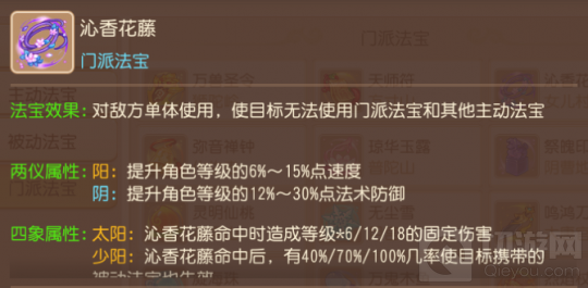 那么在番天印无法使用的时候该如何针对通灵号呢?这就需要你的队伍中有着女儿村门派,对于女儿村门派来说,女儿村门派法宝沁香花藤也同样可以禁用敌方的主动法宝。