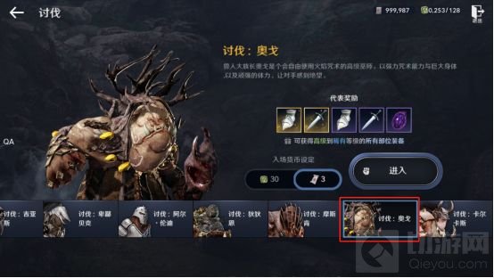 4、跟随任务指引【讨伐:奥戈】完成2次即可,不要选错讨伐目标哦(需要6张讨伐推荐书或者60点行动力,行动力不足的小伙伴可通过商城-战斗助力-入场券内购买行动力,或者完成黑精灵任务获得讨伐推荐书)