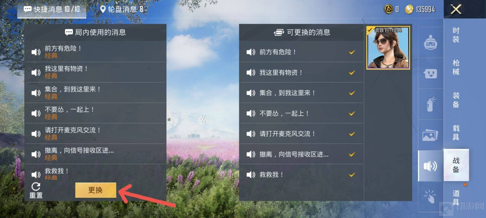 3、最后在战备旁边点击音量图标进入,在语音界面点击更换即可。