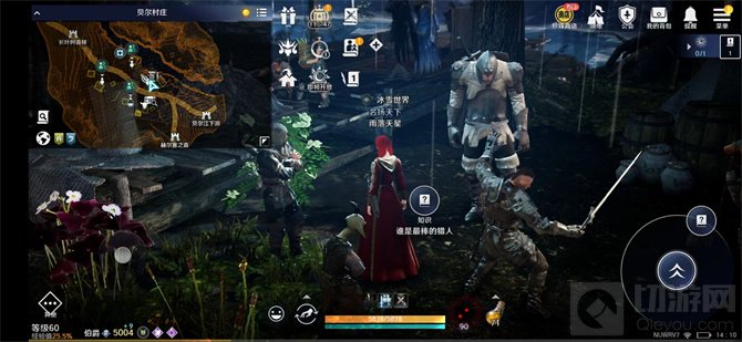 3、到达伊萨贝尔·安可罗莎位置处,在其身后的树旁边你可以看到四个猎人,其中两个穿银白色盔甲,在他们中间就可以找到知识了。