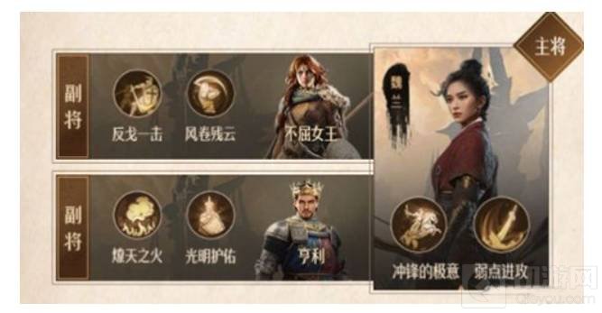六、此阵容以女帝为核心,带两个辅助英雄,加上兵种专精加成后即可成为强大战力。