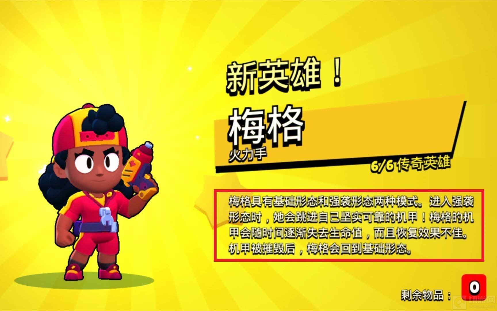 1.在荒野乱斗中的梅格手拿一把小型爆能枪,它可以在中距离开火,造成少量伤害,但是,她的生命值不算很高。