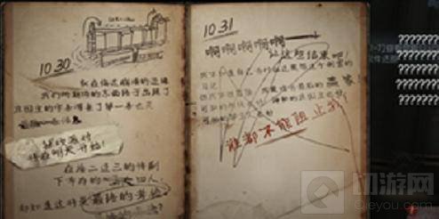 查看日记,进入求生者教学关卡3。关卡中,大家需要学会求治队友,将被屠夫挂上架子的队友救下来,并一起合作破译密码机,从大门逃出。