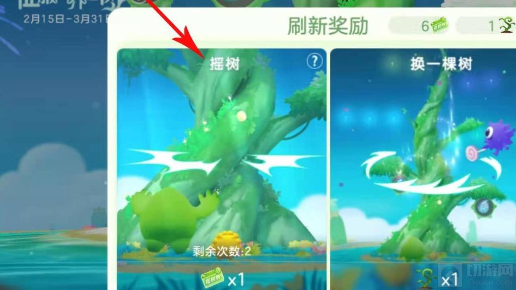 最后,点击摇树,使用一张摇树券,玩家即可找到并参与摇树活动。