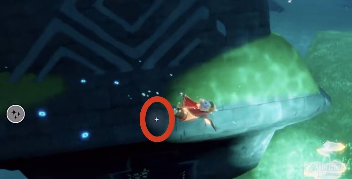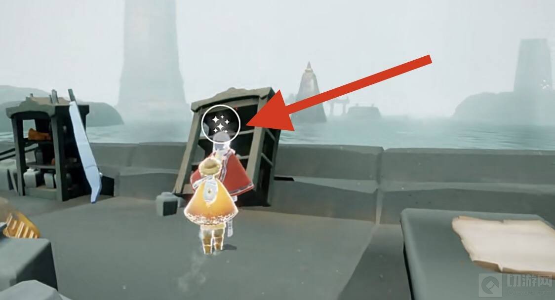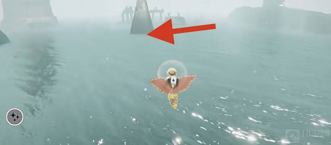 1、到达潜海季的入口之后,起飞飞向入口的左前方的位置,可以看到一艘小船,小船上会有潜海季的向导先祖。