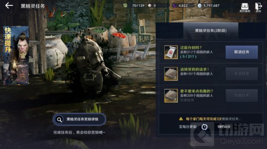 冒险家每日可接受3个黑精灵任务,家门角色共享,每天十二点更新。黑精灵任务共有5个阶段,随着黑精灵等级的提升可解锁,获取银币、讨伐推荐书、古代石板资源,是参与讨伐和古代遗迹副本的门票,黑精灵任务是每个冒险家每天必做的,不要忘记接受小黑的任务哦!