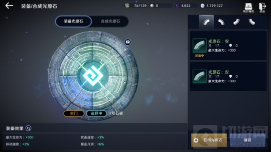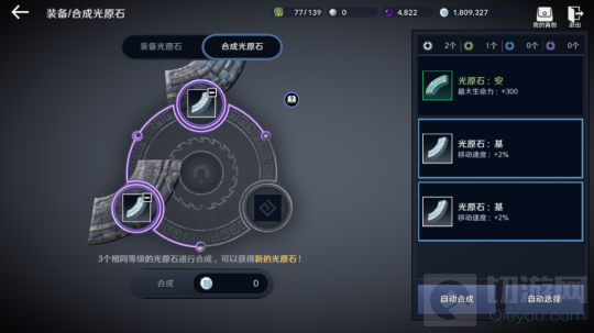 3个相同品质的光原石进行合成,可以获得新的随机光原石(有概率提升品质,如3个绿色光原石合成1个蓝色光原石)。