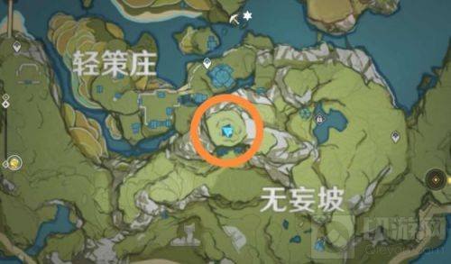 石像谜题位置:轻策庄和无妄坡交界的山顶,上面还有这个岩神瞳,所以路过的时候会有个四角星标志。