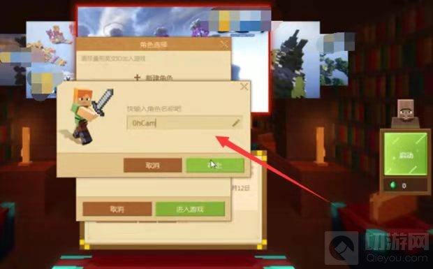 5、接着进入游戏界面,选择创建角色,输入刚才复制的披风名字点击确定;