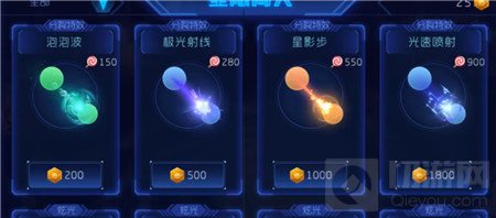 泡泡波200宇宙币、极光射线500宇宙币、星影步1000宇宙币、光速喷射1800宇宙币。
