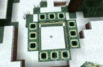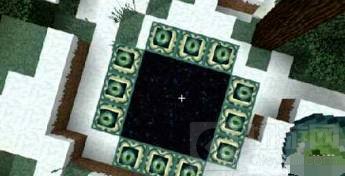 第二步:在上面放上三个传送门,再在传送门上装上眼睛,然后按照次方法在造三行,注意每个脚都不 能有方块,然后你会发现中间出现一个3*3的正方形,这九个方块都要一样,然后在中间开个 洞,放上一个和周围不一样的方块,你就可以跳进去打龙了。