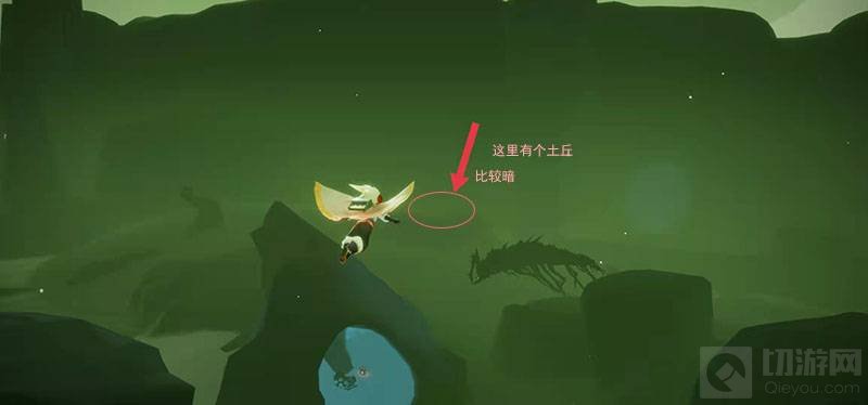 3.地方特别暗,如果不确定方向就一直往前飞。(不确定方向,就往有沉船的附近飞,看到沉船,还有土丘,地点就在附近)。