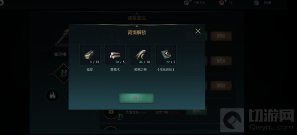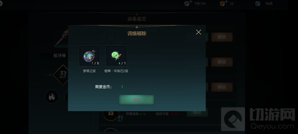 可以从上图看出,词条花费材料鉴定后,仍然需要材料解锁,并且当词条不符合你心意是也可以花费一定材料将其移除,词条的移除可以在解锁之前也可以在解锁之后。