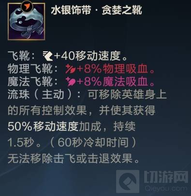 3、第三件出水银饰带 贪婪之靴 可以有效的解除敌方的控制。