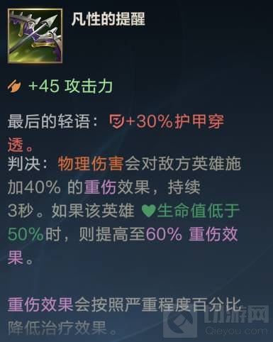 6、第六件出凡性的提醒 后期敌方的治疗装备成型 此时就需要这么一件重伤的装备 克制敌方的治疗效果。