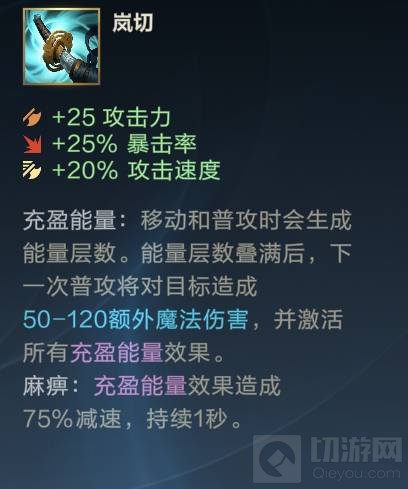 5、第五件出岚切 这件装备可以有效的减少对方的移速 后期比较关键。